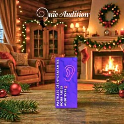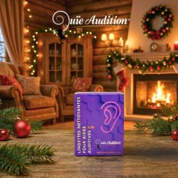 Kit d’Entretien Noël – Intra (Édition Limitée) : un coffret complet pour prendre soin de vos aides auditives intra-auriculaires. Spray nettoyant, 50 lingettes, gobelet + 4 pastilles (4 mois) et OtoFloss pour nettoyer précisément l’évent de l’intra, avec une lingette microfibre offerte.